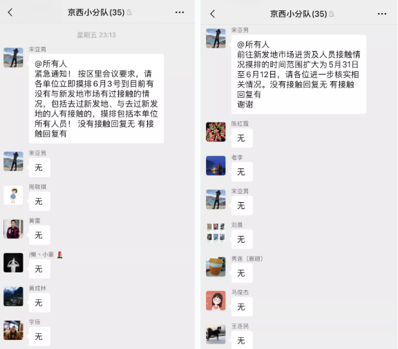 ▲项目公司内部迅速开展员工行程及接触情况排查