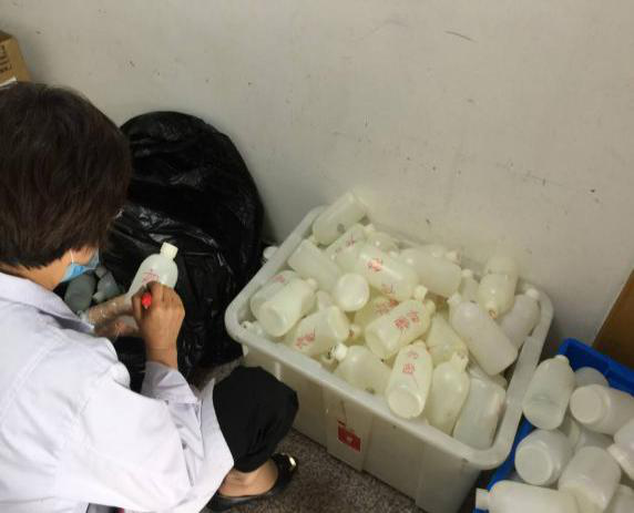干净清洁的采样容器,是保证检测数据准确性的首要环节,这2000多个每个都需要用自来水冲洗3遍,再用纯净水清洗3遍,然后晾干、烘干,再根据检测项目给容器分门别类做好标注。