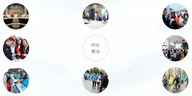 以 “12·4全国法制宣传日”、“法治宣传月”、“法润暨阳”、“世界水日”等主题活动为契机,积极宣传《城市供水条例》、《江苏省城乡供水管理条例》、《无锡市供水条例》等法律法规,向全社会普及依法用水、诚信用水、节约用水的理念。