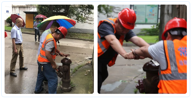 为切实保障居民客户的安全,6月18日上午,常州通用自来水有限公司供水服务部第一党支部、科一党支部、科二党支部联合常州市消防救援支队党委、西新桥三社区党总支、常州给排水工程有限公司党支部,冒雨走进西新桥三社区对社区内的所有消防设施开展联合检查。