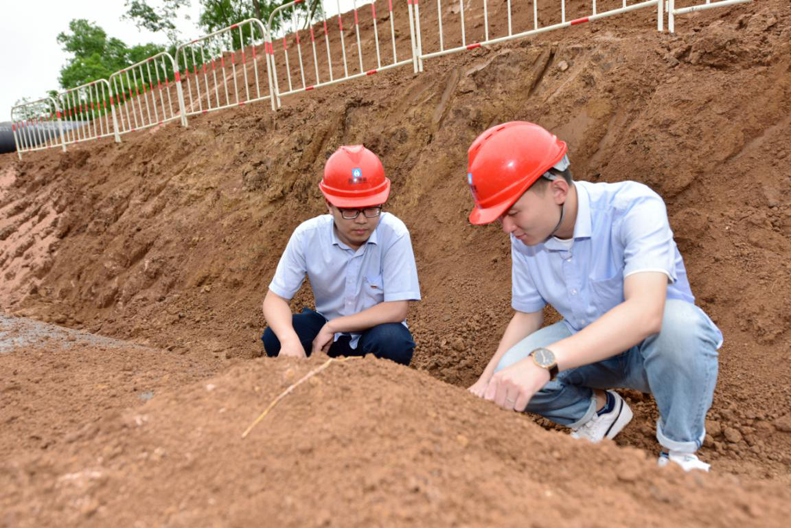 通过“工地小课堂、大练兵”、“师带徒”等途径对青年同志言传身教,在建设第一线“摸、爬、滚、打”,磨练土建、管道、设备等专项业务技能,在“进度、质量、安全”管理上下足功夫,发挥工程建设“特种兵”作用,激发个人活力与创造力。今年7月即将通水的大官塘水厂就是这样一个难得的“练兵沙场”,给了这群为梦想奋斗的年轻人际遇和机缘。许杨、沈陶与袁学文、张金分别负责着大官塘水厂的重要配套项目——原水输配水管道、35kV外电,他们4人均是第一次担任重点项目负责人,平均年龄还不到30岁。
