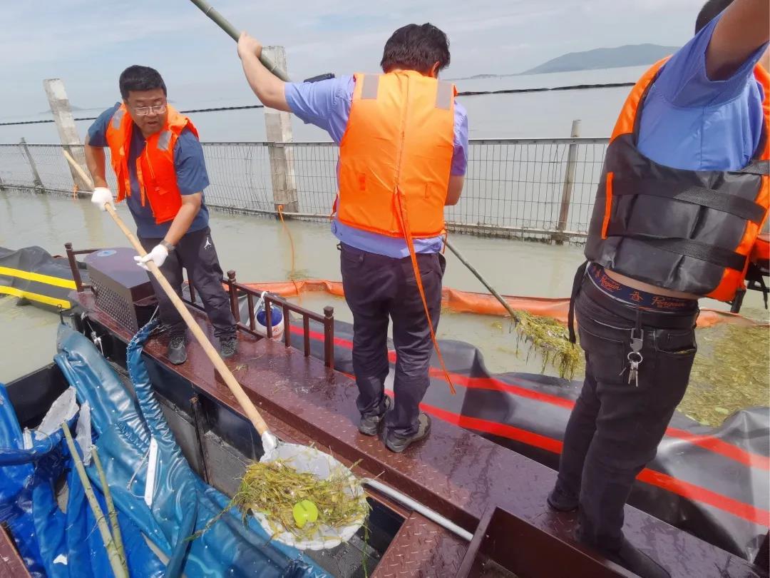 5月,公司添置了4艘蓝藻智能清理船,针对蓝藻打捞船难以驶入的近岸点,研究设置“可移动的收集口”,通过管道连接至岸边吸藻车,进一步提升蓝藻打捞和处置效率。面对高藻期可能出现的各类藻情变化,公司联合专业保洁单位,加大了打捞船只和作业人员的储备,随时准备应对各类突发状况。
