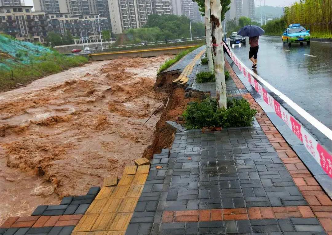 峡州大道猫耳冲隧道外边坡、江城大道二标路基边坡出现垮塌,点长公路的过河便道、夷桥路跨线桥辅路人行道被冲毁……为保证相关道路的行人、车辆安全,城投公司组织人员对积水区域排水系统进行清疏,对边坡垮塌部位进行临时封闭做好安全警示并及时修复,对施工区域周边村民出行的村级道路进行及时清理。二 “雨”中坚守,守护居民生活安全