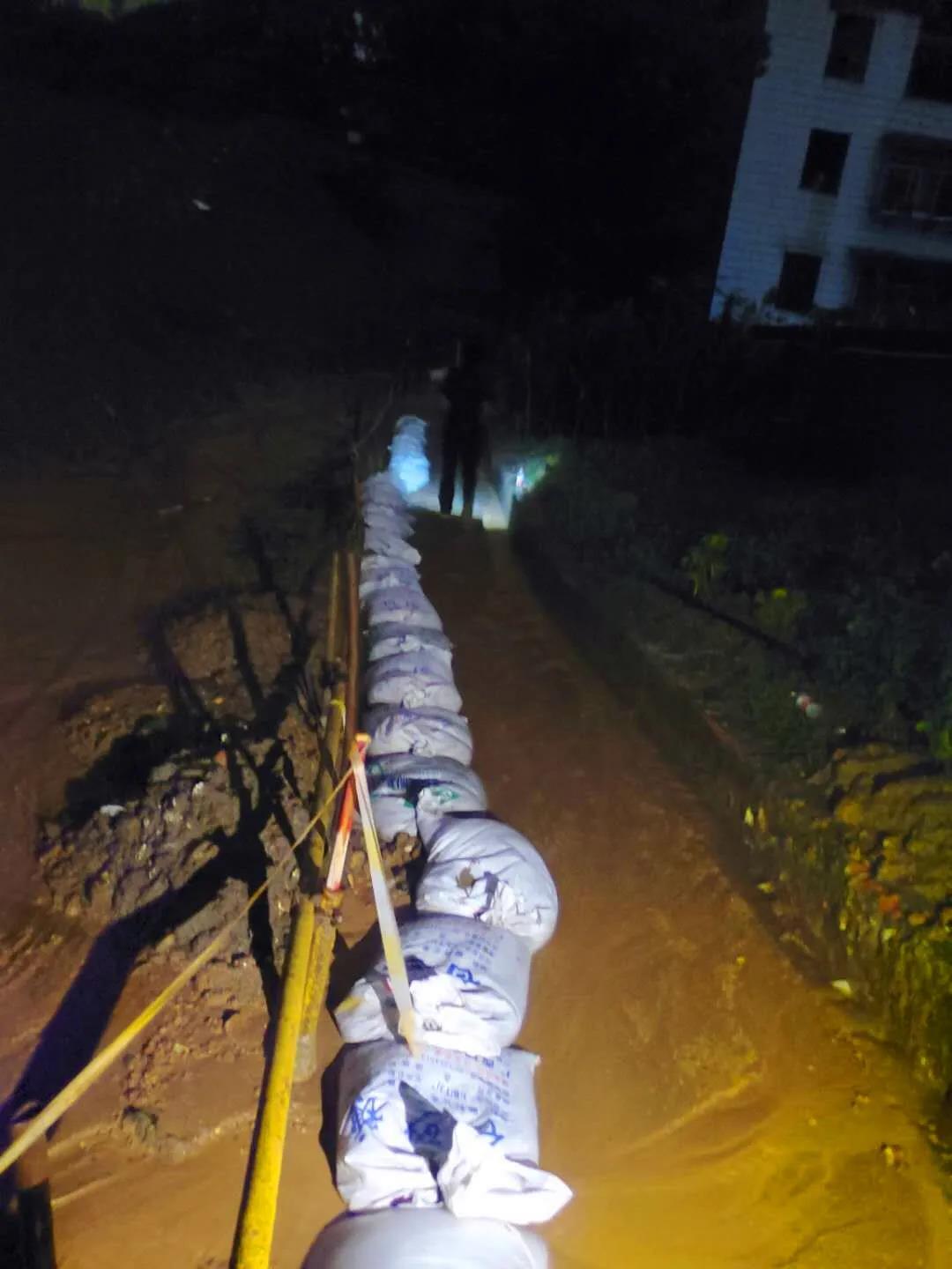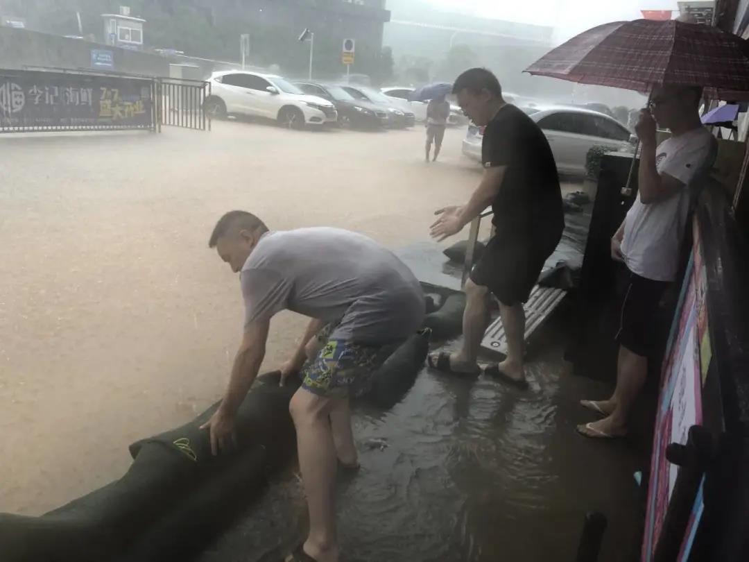 △ 旅游学院堆放沙袋,防止雨水排入居民房屋