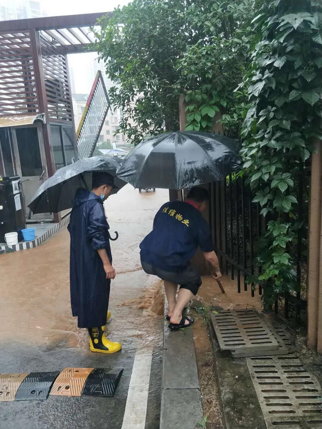 民安家园、听涛苑小区边坡受暴雨影响出现部分滑坡,上合园小区两处围墙垮塌,东辰壹号御景小区因城东公园大量山水倾泻,部分商铺进水……集团所属物业公司针对巡查中发现的问题,迅速组织人员,对滑坡垮塌区域进行警戒值守,针对商铺进水的情况,第一时间通知商铺人员断电,并开展排水抢修工作,同时调配防汛物资对地下车库等易积水区域进行处理,力争将暴雨对居民生活的影响降至最低。集团公房管理公司对在管的280栋直管公房1934户居民进行现场巡查,针对长康路8-10号2户D级危房、沿江大道112号C、D级危房各1户存在安全隐患,工作人员立即安排4户居民前往宾馆入驻,并对其房屋进行了抢险维修。