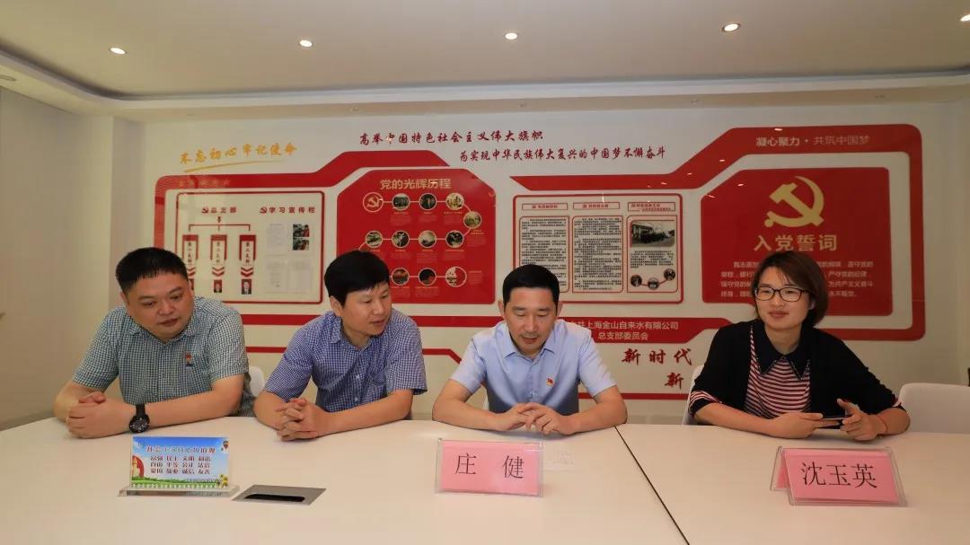 在中国共产党成立99年之际,新金山投控集团党委副书记、城投集团总经理庄健前来我司看望慰问抗疫一线党员代表和困难党员代表,送来了组织关怀。庄健询问了党员代表工作生活近况,了解了疫情防控和供水保障工作,勉励困难党员保持良好心态、积极乐观生活。同时要求公司广大党员坚持不忘初心、牢记使命,以“四史”主题教育为契机,进一步突出党员先锋模范作用,提升供水服务保障能力,向着“第一个百年奋斗目标”砥砺前行。公司党政班子成员、城投集团办公室相关负责人陪同慰问。