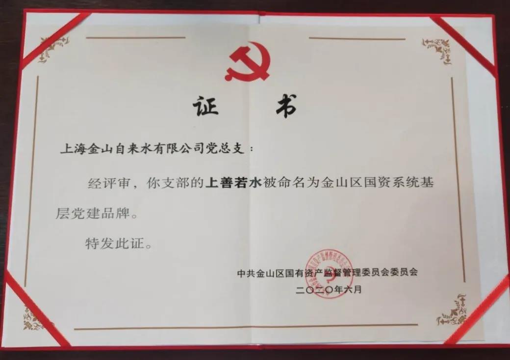 近期,捷报频传。依托“上善若水”党建品牌创建设,企业党建工作在不断探索实践中焕发新活力、呈现新面貌,先后被评为“金山区党支部建设示范点”“五星级党支部”“金山区国资系统基层党建品牌”等一系列荣誉。