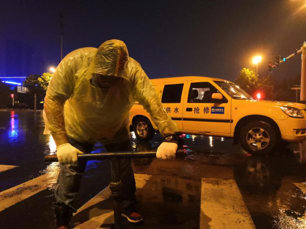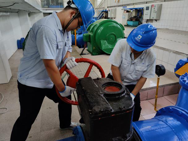 6月25日晚23点,管道进行最后一次冲洗。冲洗前期,对冲洗方案进行统筹分析、反复推敲,科学测算,现场实地勘察并制定应急预案。冲洗过程中,安排专人值守关键点,工程管理部、生产部、滨湖所、四水厂、水质管控部等部门对冲洗管道的流量、压力值及水质变化情况进行实时监测。正值端午佳节,工程现场却是热闹纷繁,大家各负其职坚守岗位,彻夜奋战,圆满完成了冲洗任务,水质化验结果反馈合格,具备并网通水条件。