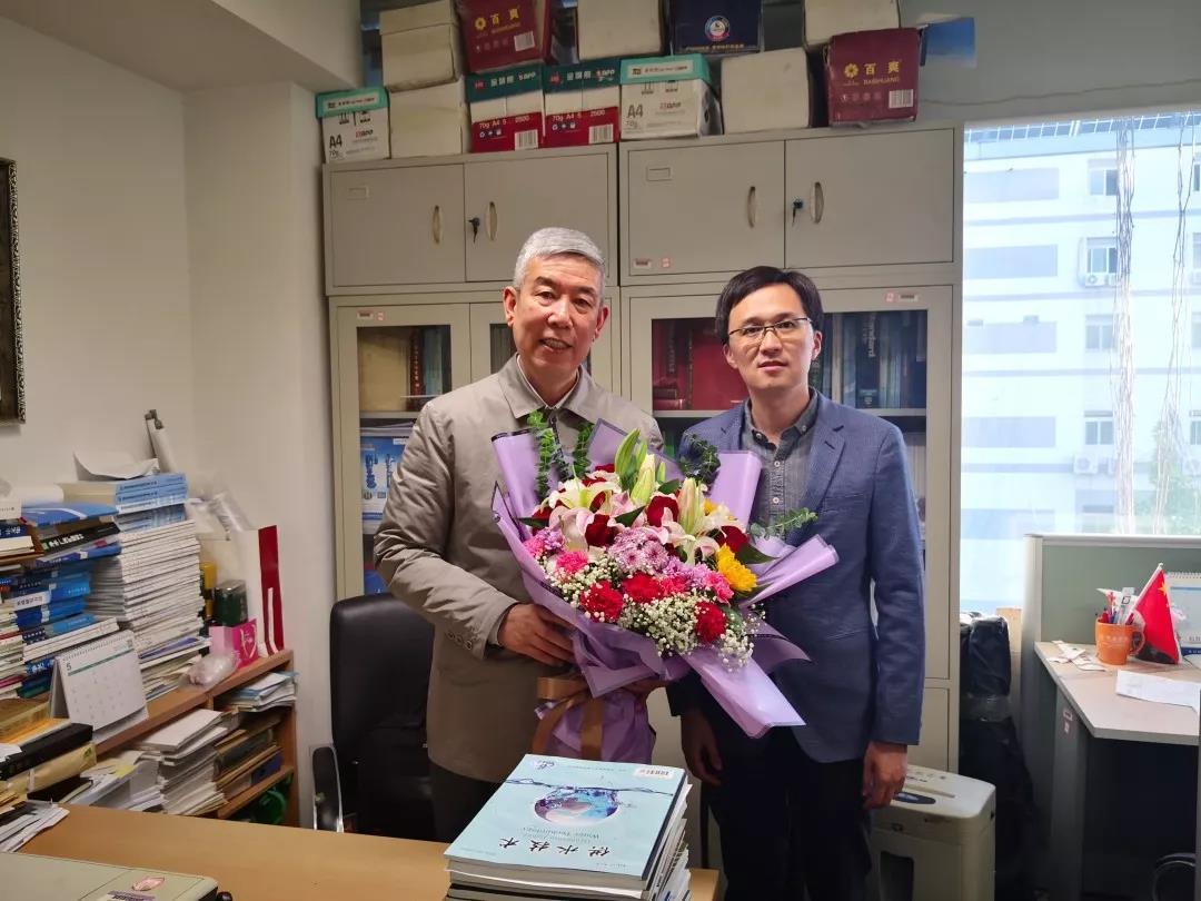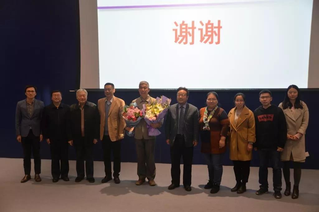张晓健(左5)在荣退报告会现场和院领导及部分师生合影