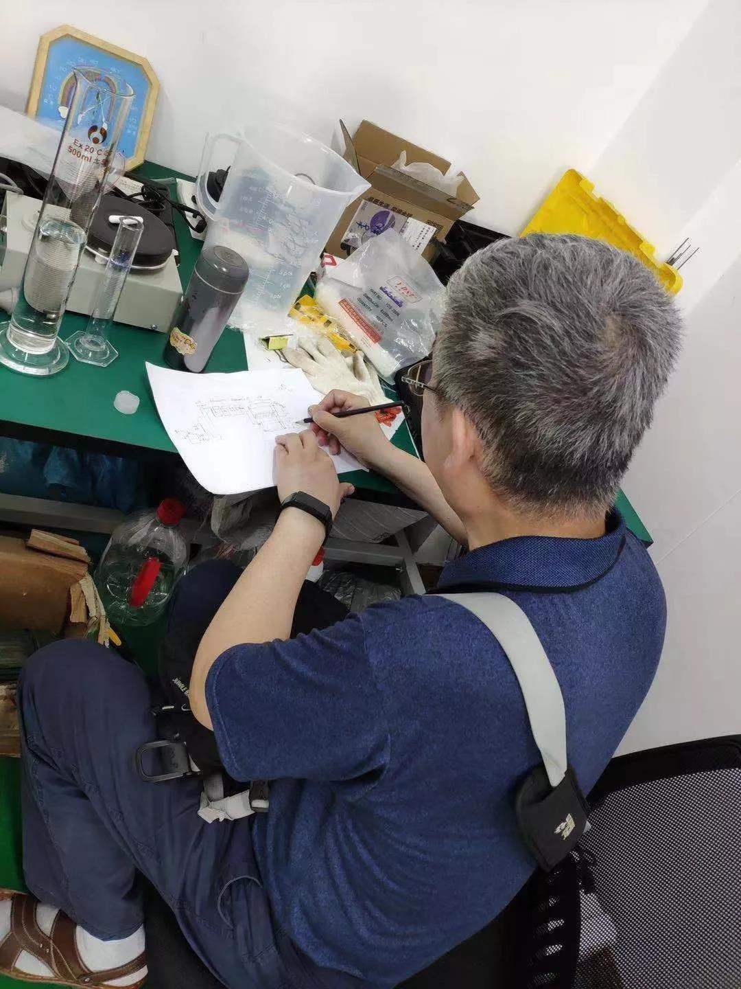 今年,在张晓健退休前参与的最后一个国家水专项研究中,他仍然坚持站好最后一班岗。刚到现场,包还未来得及放下,就直奔实验室,指导研究人员进行试验,长时间的站立使得他的小腿慢慢肿了起来,他这才坐下,随意找了块桌角,铺着草稿纸继续工作,完全看不出一点「专家的样子」。可就是在这样的犄角旮旯,他曾举重若轻般解决的治理难题不知凡几。