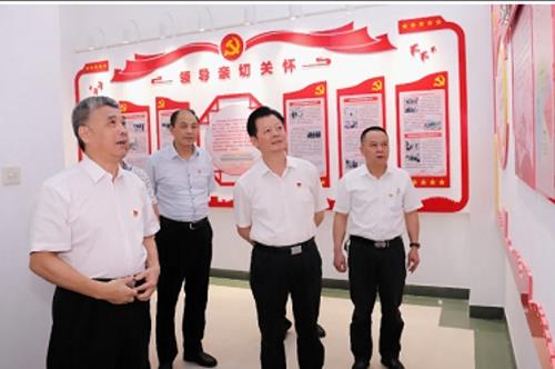 参加活动的领导一行参观了党建文化宣传墙,充分肯定自来水总公司党委基层党建成果。