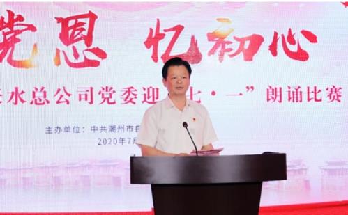 为颂扬党的丰功伟绩,继承和发扬党的优良传统,进一步淬炼广大党员干部的党性和灵魂,奋力谱写新时代基层党建新篇章。7月1日,潮州市自来水总公司党委隆重举办了“七•一”“诵党恩、忆初心”朗诵比赛,副市长洪岳伟同志出席并致辞,市委组织部、市直工委、市纪委监委驻市府办纪检组、市城综局等单位领导、市自来水总公司党委领导班子及各基层党支部100余名党员干部参加了活动。
