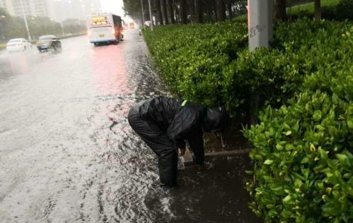 防汛人员雨中前行,分组对北京路全线分段巡查,及时处置积淹水域,全力排水抢险,在易积水路段果断设置警示标志。防汛区域地势高低不平,低洼路段较多,增加了防汛压力,公司对北京路重点区域的五莲路路口、山海路路口、莒州路路口、秦皇岛路至大连路路段,安排专人巡查蹲守,迅速清理积水区域雨篦杂物、树叶、淤泥等,对严重积水区域开启下水井盖、雨篦排水泄水。暴雨伊始,作为重点防汛部位的秦皇岛路至大连路的北京路段,瞬间出现了大面积深度积水,行车行人困难,防汛人员迅速设置警示标志,雨水中摸索开启下水井盖、雨篦,加速泄水排涝。同时,通知日照开发区凯润集团协同作业,实行道路暂时半封闭限行,相互配合排水泄水。