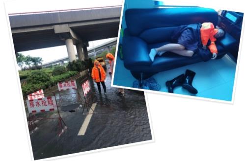 自进入汛期以来,在滂沱大雨中,总能看见一抹橘黄色的身影。他们无论家有老小,还是身有不适,无论家事繁杂,还是个人事急,集团防汛工作人员始终坚守在一线。一旦雨情紧急,便无条件上路巡查、蹲守点位和留守值班。为保证及时出门,又不影响家人休息,临时睡客厅、睡办公室更是家常便饭。