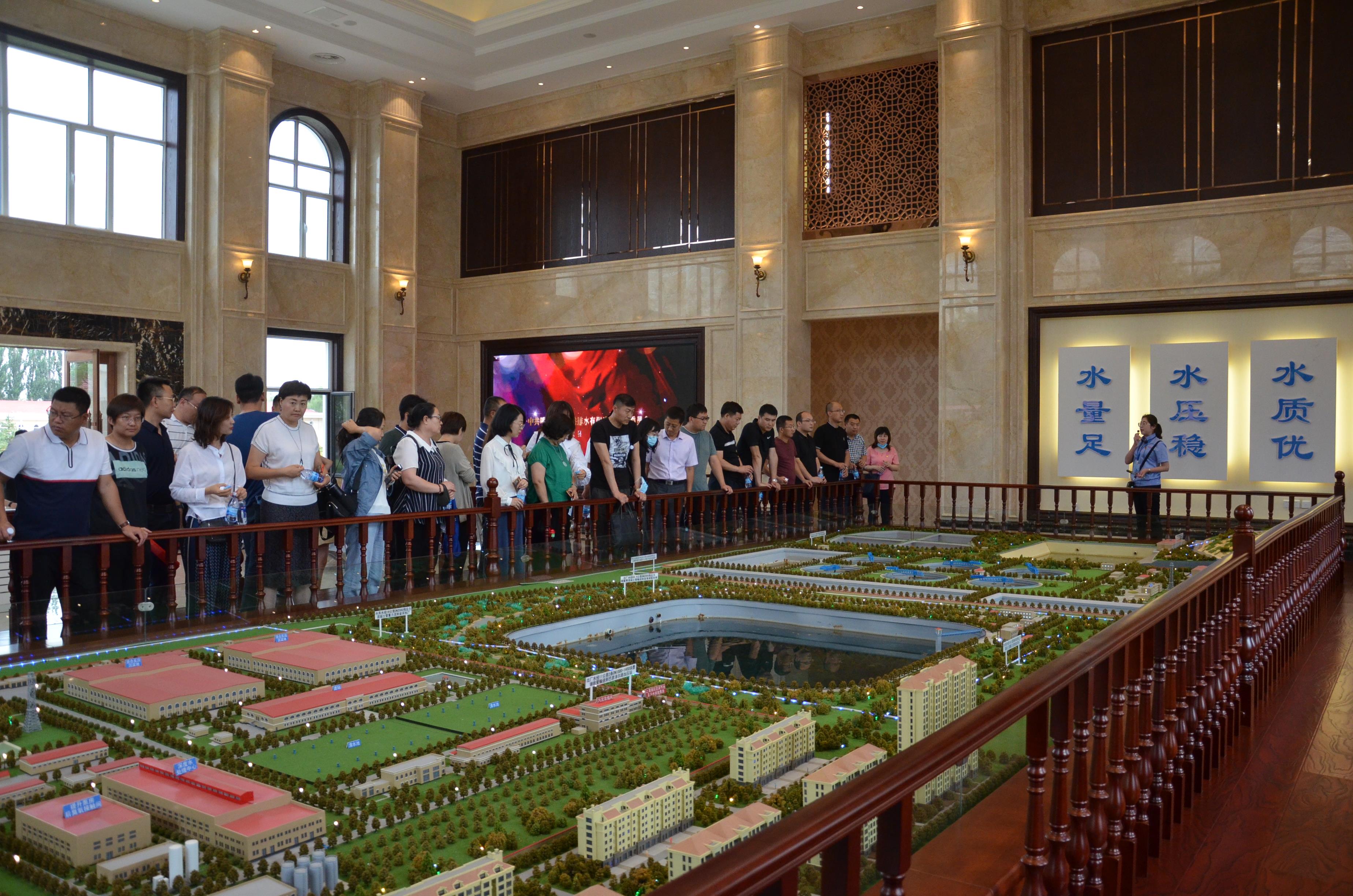 在引黄展厅,大家驻足观看供排水宣传片,随后讲解员通过引黄工艺沙盘为大家详细介绍了引黄工艺及深度水处理工艺流程,让大家深切感受到我们的自来水从黄河原水变为出厂安全饮用水的工序繁多,净化过程之复杂,以此来唤醒大家珍惜、爱惜自来水的节水意识。