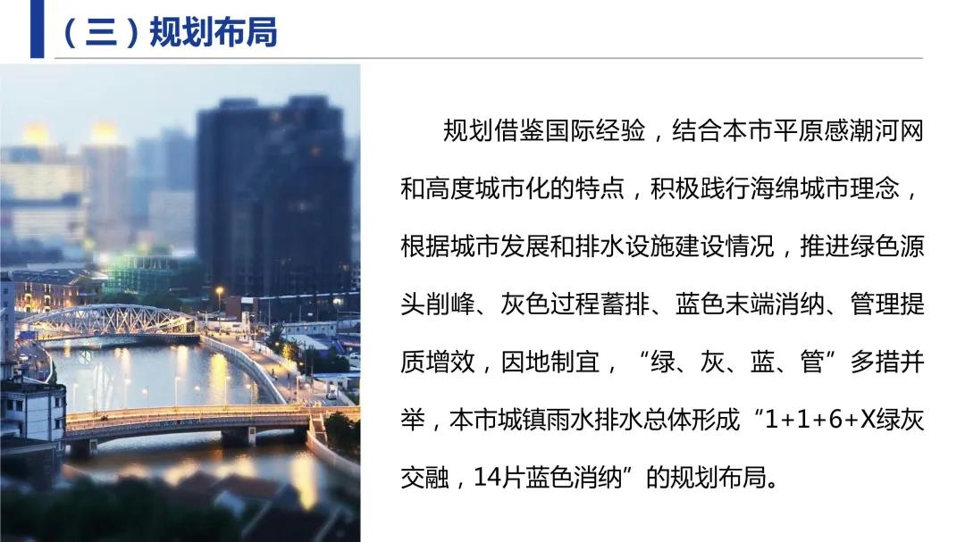 市政府批复同意《上海市城镇雨水排水规划(2020-2035年)》。《规划》提出本市城镇雨水排水规划目标,提出“绿、灰、蓝、管”多措并举的规划理念,明确了排水系统设计重现期和强排系统初期雨水截流标准。明确本市城镇雨水排水总体形成“1+1+6+X绿灰交融,14片蓝色消纳”的规划布局及规划任务。详见↓