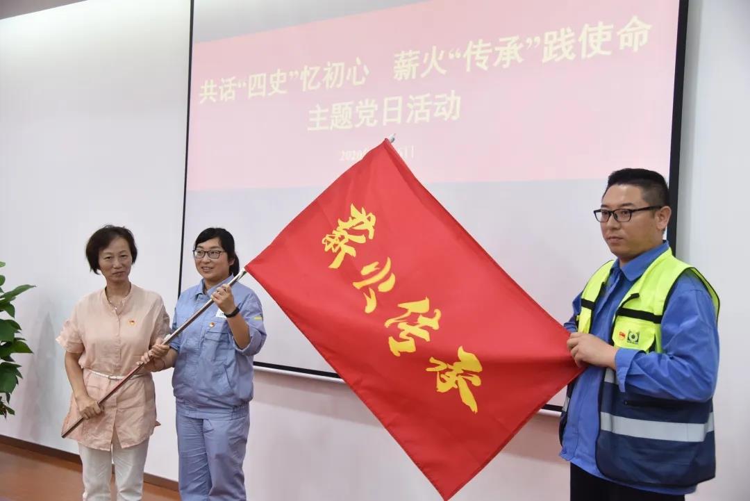 活动中,老一辈制水人与项目临时联合党支部青年代表举行了“薪火传承”旗帜交接仪式。青年代表庄严承诺:要继承和发扬老一辈制水人的优良传统和工作作风,做一个敢担当、勇作为、作表率的水务人。