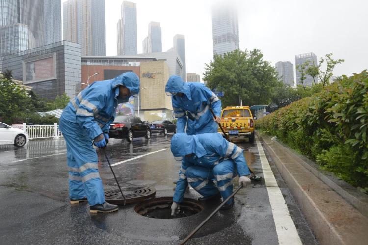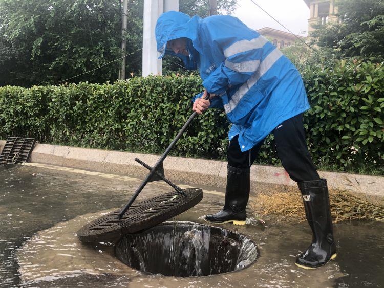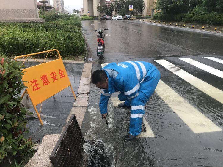 7月19日凌晨1时,随着雨势的不断增大,青岛水务排水公司立即启动防汛预案,300余名防汛队员闻“汛”而动、不顾连续奋战的疲劳,快速反应,按照防汛预案要求到达值守点,查看道路积水情况,恢复移位的井盖,对覆盖雨水设施的垃圾杂物进行及时清理,对排水不畅的雨水设施立即进行疏通,筑起了一道道抗击雨情的坚固堤防。