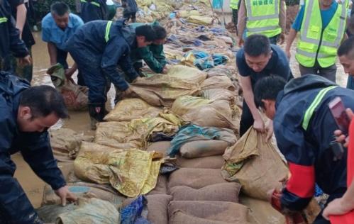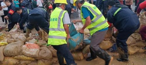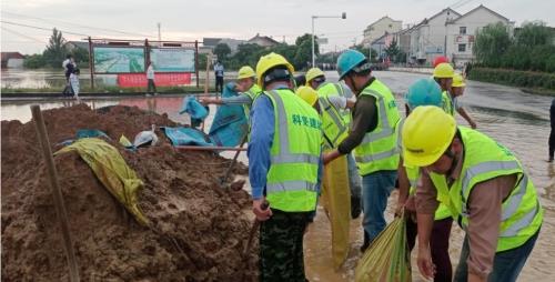 7月16日早上7时,钟桥河大桥路段出现险情,老钟桥河大桥已经完全被淹没,新大桥水位上涨迅速,若持续下去,有危及周边居民的隐患,为确保周边群众生命财产安全,郎溪县自来水总公司接到上级防汛抢险命令,迅速组织抢防汛险队伍,赶往现场。雨情就是险情,汛情就是命令。队员们一方面熟练地灌泥包、背石子、扛沙包等,确保沙袋数量充足,另一方面他们加强对钟桥河河堤的巡查,确保无其他渗漏浸水。到了下午,钟桥河河水上涨迅速,漫过桥面,抢险队员在交警部门配合下,将钟桥河路段封闭,对通行群众进行劝阻,对道路进行围挡加筑,晚上7点前已完成路面筑堤。