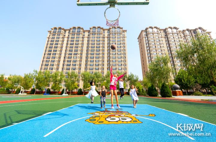 孩子们在五实小操场上玩耍。迁安市住建局供图