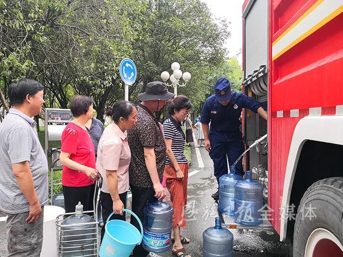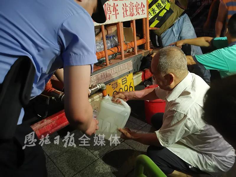 7月23日,按照地方党委的统一调度部署,恩施州消防救援部门先后调集特勤和恩施市、利川市、建始县、巴东县、宣恩县、咸丰县、来凤县、鹤峰县10个消防救援站32名指战员,出动消防车12台(一次性供水能力119吨),深入立讯精密公司、市一中、市公安局、州中心医院、州民族医院、市中心医院、拘留所(看守所)、华龙城小区、柑子槽小区等缺水严重的地方,采取24小时轮流作业的方式,参与送水工作,解决社会单位和人民群众生产生活所需。