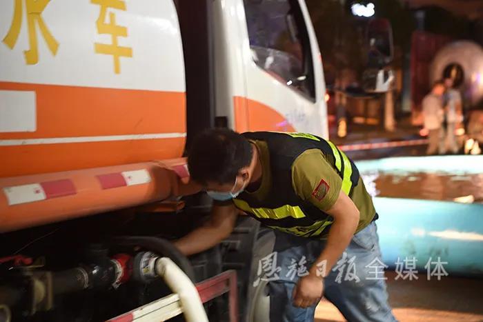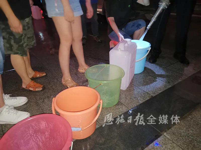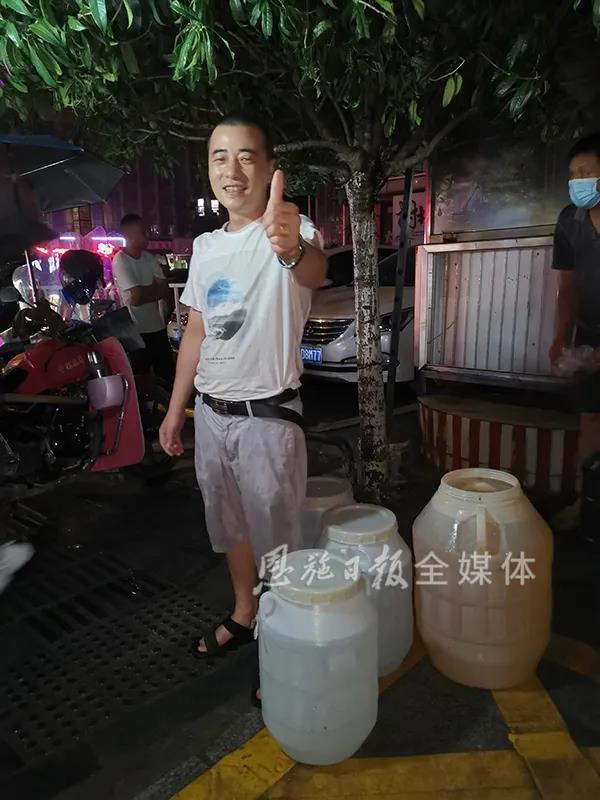 值得一提的是,这辆装载纯净水的应急供水车来自黄石市。在得知恩施供水困难后,黄石市积极驰援恩施市,派出1辆应急供水车和3名司机,21日连夜出发,于22日12时抵达恩施,随后马不停蹄参与到州城供水派送中来。