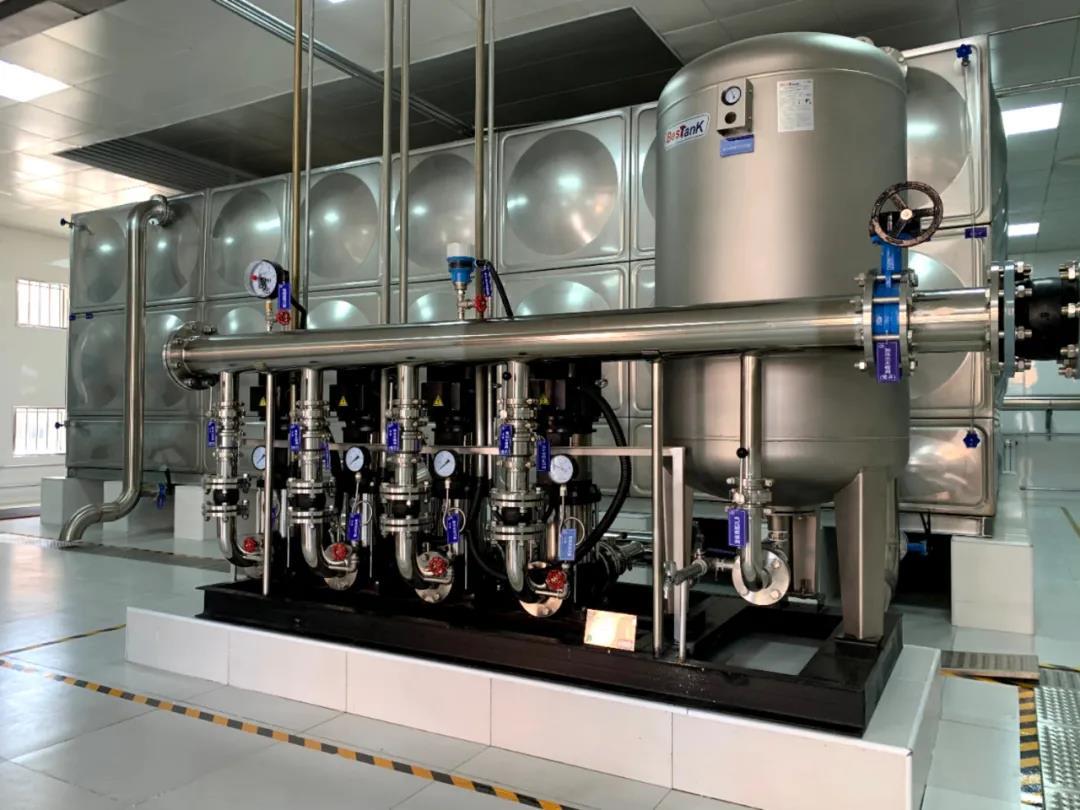 泵房水箱选用SUS304食品级不锈钢,三期计划采用SUS316食品级不锈钢;水泵选用国内一线品牌且为不锈钢材质泵轴;一般中、低等级的阀门、阀体多为灰口铸铁式碳钢材质,而升级改造阀门阀体选用球墨铸铁,而阀轴采用铜质或不锈钢材质;泵房工艺管道选用不锈钢材质。