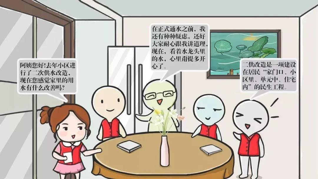通过老旧小区供排水管网及二次供水设施改造工程对二次供水管网进行提标改造,将相邻的小区整合成片区,全部重新规划设计,并从市政管网新接入进水管道,彻底更新改造市政管网接驳点至户内水表之间的供水管道,改造工程通过科学设计,采用新型优质管材更换老旧管材,根据需要增加配置二次供水加压泵房,保证了水质水压,能够满足居民正常用水需求。
