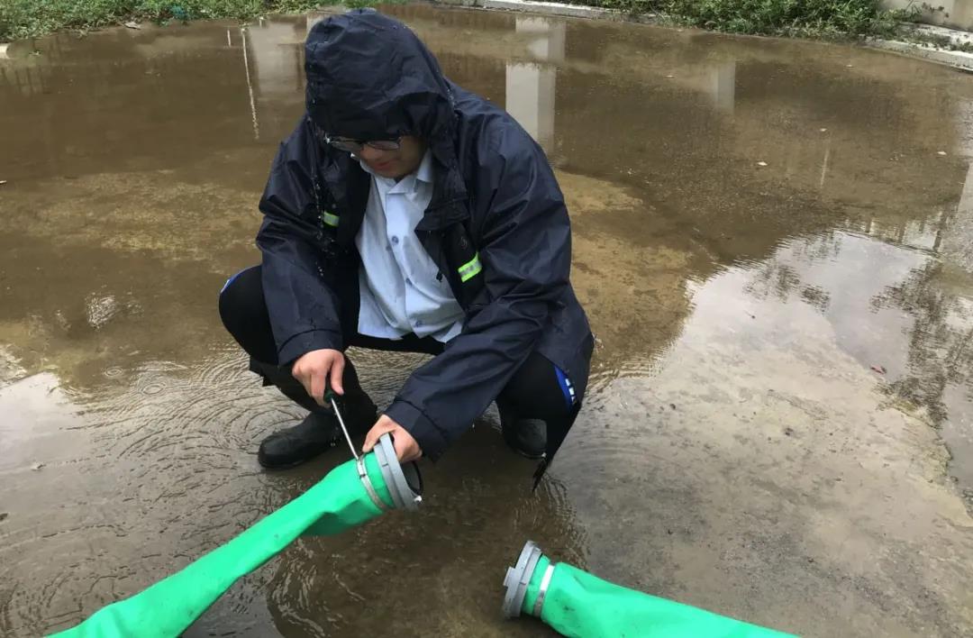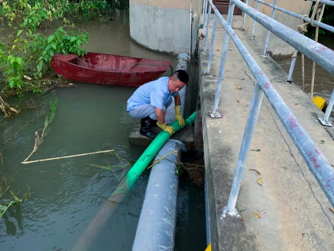 南京八卦洲位于长江之中,周边水流湍急,连日来的降雨,使得防汛形势严峻。7月11日,八卦洲公司值班人员巡视厂区时发现污水池出现江水倒灌现象,情况危急,公司领导及业务骨干获悉后迅速赶到现场,开展紧急处置。在综合考虑现场情况后,共产党员、班组长马仕广穿上胶靴、雨裤带领施工人员开展抢修,在污水管道出水口处添加软管并固定在水泥墩上,提高排污管出水位置,解决江水倒灌问题。经过三小时的施工,圆满解决问题,消除水厂安全隐患。