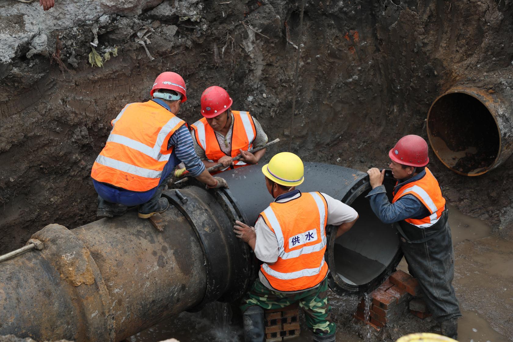 7月16日晚上11点,随着管网管理处关闭闸门排空管道内余水后,豫鹰公司施工人员挑灯夜战,面对不时来袭的倾盆暴雨,他们无所畏惧,现场搭起帐篷,站在泥坑坑里,忍受着蚊虫叮咬、闷热潮湿等诸多不利因素,夜以继日的连续奋战。经过24个小时的昼夜奋战,DN700mm供水管道碰头工作于7月17日晚上11点顺利完工,并于7月18日凌晨恢复供水。