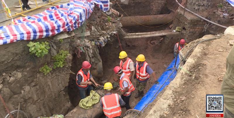 7月17日上午,在和顺路与凌云路交叉口西侧施工工地,只见一台大型吊机拖装着一节弯头吊入已开挖好的沟槽内,施工人员不顾作业坑内的泥泞进行着新老管道的调整、固定、焊接……