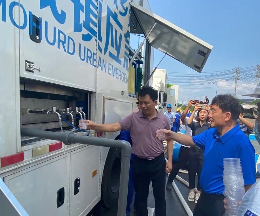 住房和城乡建设部于2015年启动实施“国家供水应急救援能力建设”项目,在辽宁抚顺、山东济南、江苏南京、湖北武汉、广东广州、河南郑州、四川绵阳、新疆乌鲁木齐建设国家应急供水救援中心,设置保养基地,各配备一套应急供水设备。每套装备包括5立方米/小时移动式应急净水装置4台、有机物及常规指标水质监测装置1台、重金属及常规指标水质监测装置1台、应急保障装置1套(包括通讯工具、动力保障、照明及物资材料储备、水样采集设备等)。2019年11月14日,住房和城乡建设部举行国家供水应急救援装备移交工作会议暨授牌仪式,黄艳副部长主持会议并讲话,向各国家供水应急救援中心区域基地授牌。中规院依托长期开展科研和社会公益工作打下的坚实基础,承担了本项目应急救援装置的建设任务。在住房和城乡建设部领导下,认真落实项目总体部署,不忘初心、牢记使命、勇于担当、开拓创新,先后开展应用调研、设备比选、工艺设计、生产建造、竣工验收,历经三年如期圆满完成建设任务,装置于2019年底移交给全国八个国家供水应急救援中心区域基地。应急状况下的供水安全保障能力,事关灾后群众的饮水安全和基本生活保障,为实现多种突发事件下的快速响应,在国家层面构建城镇供水应急救援体系意义十分重大。此次供水应急救援,是8个国家供水应急救援基地组建以来,首次进行的实战应急供水救援。