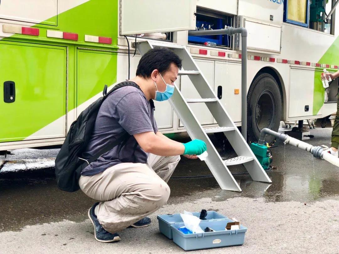 应急供水工作组宋陆阳在应急水车现场连续开展水质监测