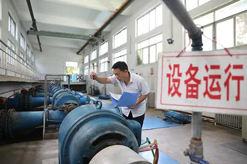 水厂职工对酷热早已习以为常,他们麻利地在高温泵房内查看设备仪表的数据、温度、水泵轴承转动情况;仔细观察水的澄清程度;取样、沉淀、检测样样细致。为了应对高温天气,确保供水生产安全运行,生产一线人员24小时坚守岗位,加大对供水生产设备的日常巡检和维护力度、频率,全力以赴满足居民用水需求。
