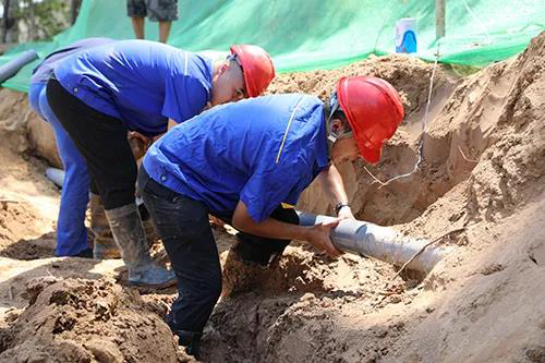 尽管酷暑难耐,但为保障工程按时保质完成,施工队员们坚持在没有任何遮阳物的施工现场挥汗劳作,一身汗水一身泥,一天下来,衣领结盐,但他们留下的,是供水管道的畅通,是供水能力的保障!