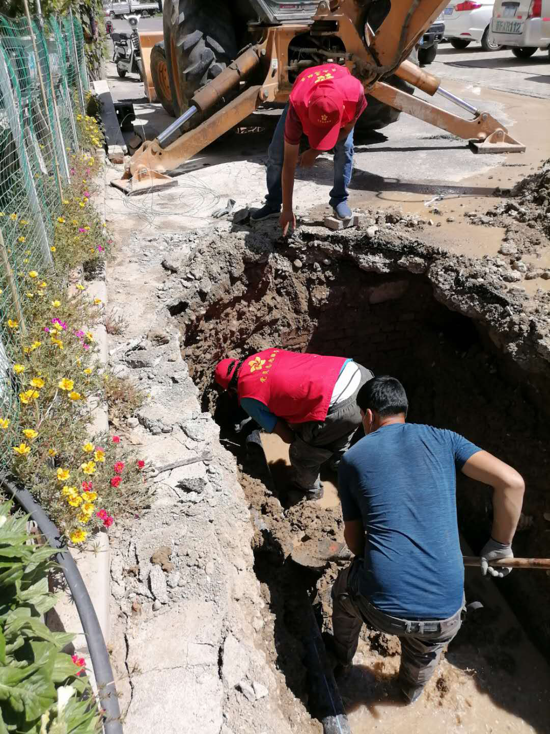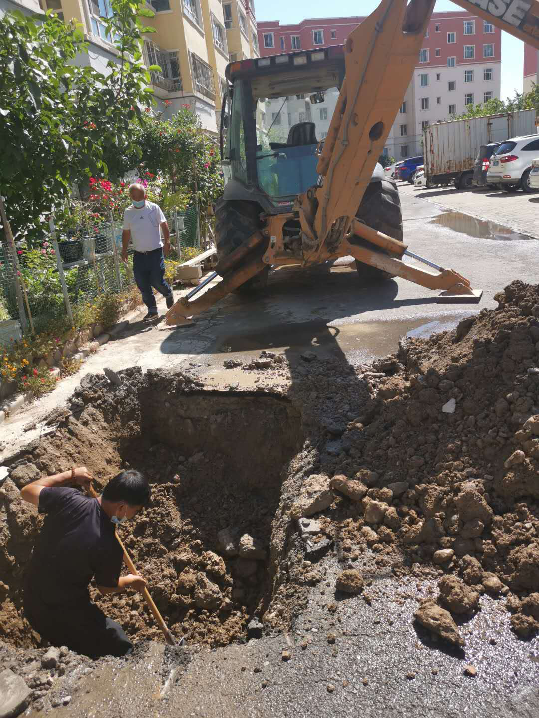 抢修队员们在炎炎烈日下顶着30多度的高温,不停地挖土、刨泥、排水,发扬着连续作战的精神。全体成员团结一心,协同工作,奋战了4个多小时,于下午16:30分完成了维修任务,恢复了绿景小区的正常供水。抢修队用实际行动践行了疫情期间心系群众,为民解忧的的承诺。