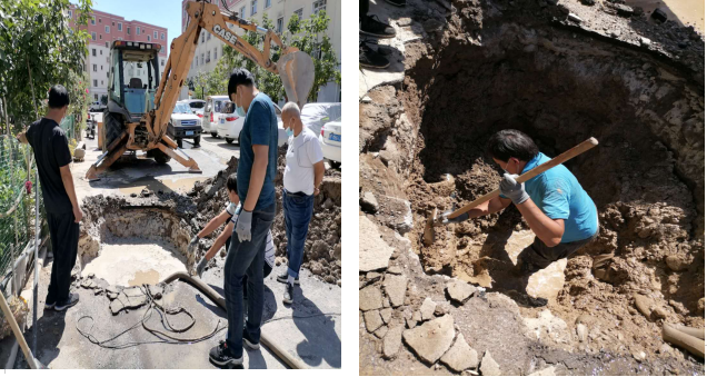 2020年7月30日上午12点,伊宁县杏祥供排水有限公司接到抢修电话,伊宁县绿景小区里DN110主管道爆裂,大量的泥水从地面涌出,为确保小区400户居民用水,伊宁县杏祥供排水有限公司领导迅速向上级汇报,第一时间赶赴现场指导,制定了维修方案。伊宁县住建局领导强调:当前正值高温天气,自来水的正常供应对千家万户尤为重要,一定要加快维修速度,尽快恢复供水。