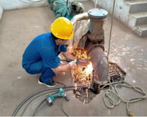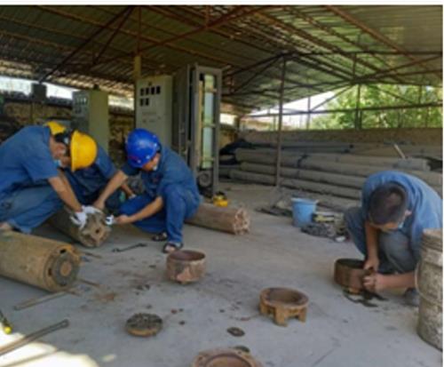 故障原因是由于供水生产任务重,高负荷供水造成的泵轴断裂,必须拔泵维修。23根3米多长的泵管,在吊葫芦的辅助下,一根根的拆卸下来,小小的井房内,大家严格按照操作规程紧密配合,等到泵管拔完,安全帽下的头发已经全部被汗水湿透,脸上也在不经意的擦汗过程中粘上脏兮兮的铁锈。