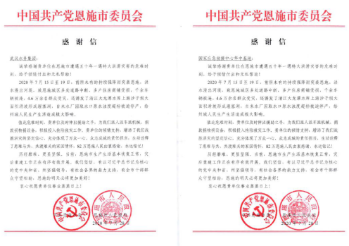 “诚挚感谢贵单位在恩施市遭遇五十年一遇特大洪涝灾害的危难时刻,给予倾情付出和无私帮助!80万恩施人民由衷感谢、永远铭记!”8月5日,一封饱含深情的感谢信,从湖北恩施市委、市政府寄到武汉市水务集团。7月21日,因连续强降雨诱发清江大龙潭水库上游沙子坝大面积滑坡形成堰塞湖,该市两座主供水厂取水口原水浊度严重超标被迫停产,城区供水中断。