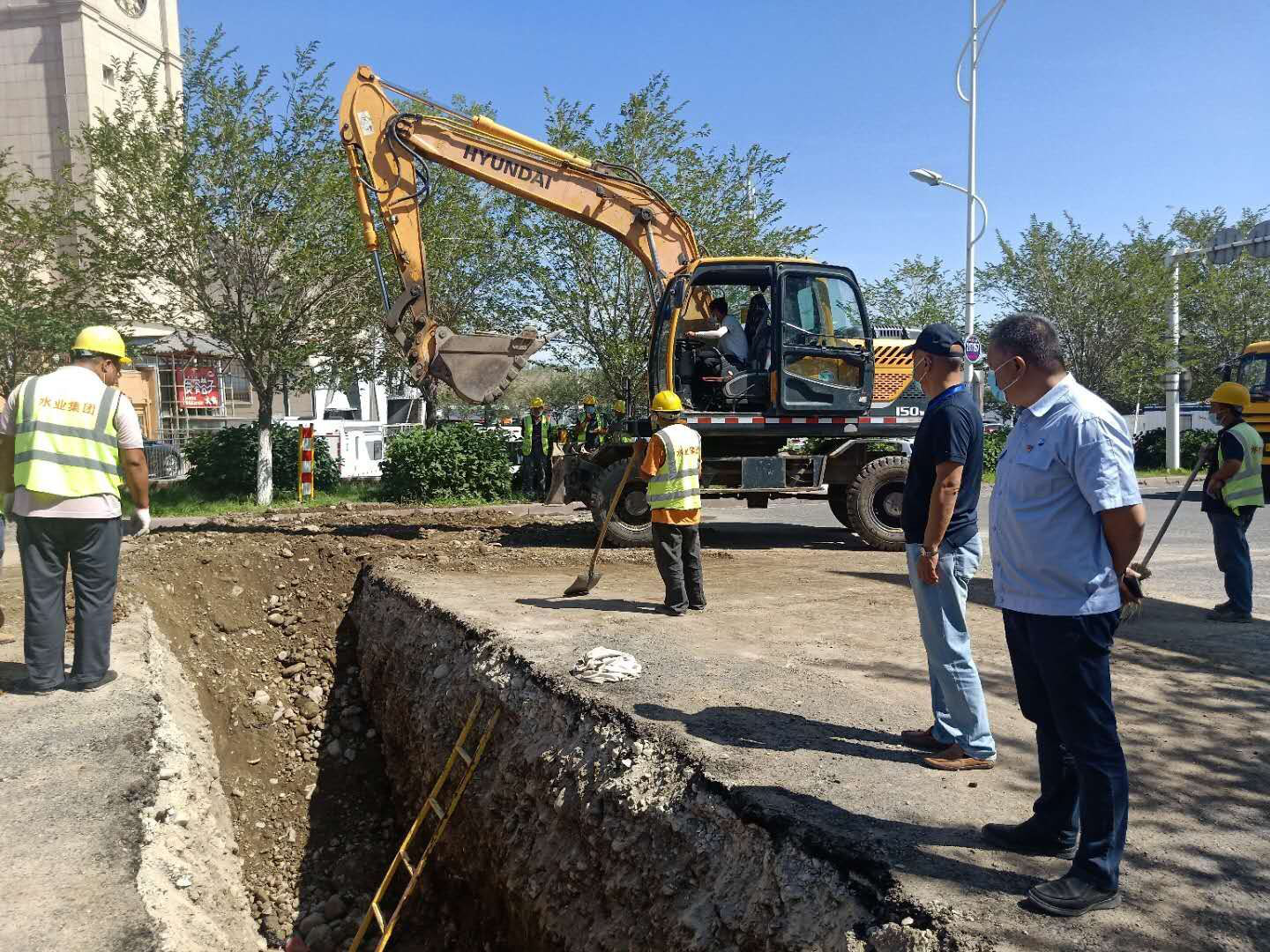 “8月1日中午,沙区开始施工,2日晚上8点完成通水,连续作战30个小时,这一场战斗,我们打赢了。”陈明明自豪地说,上午接到任务,与沙区供水公司对接后,面对没有施工图纸,地下管线设施管理单位无法到现场交底等困难,建投人凭着一腔热忱和过硬的专业技术本领,针对沙区施工现场特殊情况,制定了两套施工方案。方案一,以最短时间完成通水。方案二,为城市经济发展、市民安全用水拓展建设范围,打好永固基础。