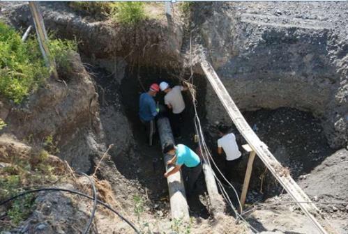 为尽量减少停水对居民生活的影响,抢修人员连夜作战,终于找到漏水点。该处铁管由于严重锈烂腐蚀导致漏水,需要重新设卡修复供水管线。抢修人员没有片刻休息,汗水湿透了衣衫、蚊虫叮咬,在极小的空间进行作业,经过3个多小时修复,终于恢复了正常供水。