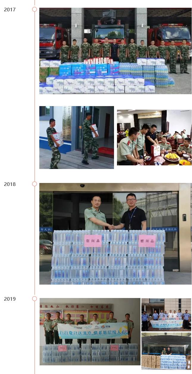 吴江华衍水务作为公用服务事业型企业,在做好吴江区日常供水服务的同时,也积极履行社会责任,大力弘扬拥军优属、拥政爱民的光荣传统,吴江华衍水务暨江苏华衍纯净水每年都会举办各种拥军活动: