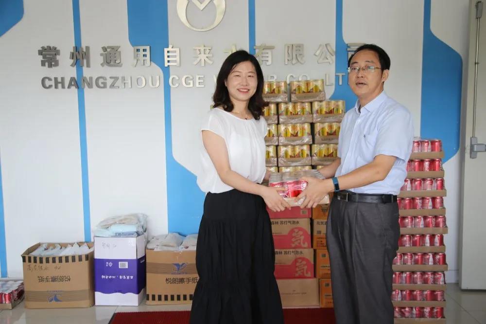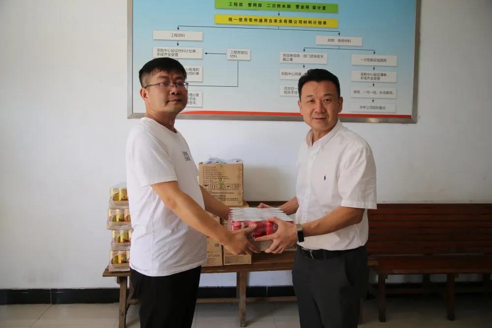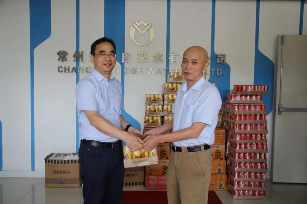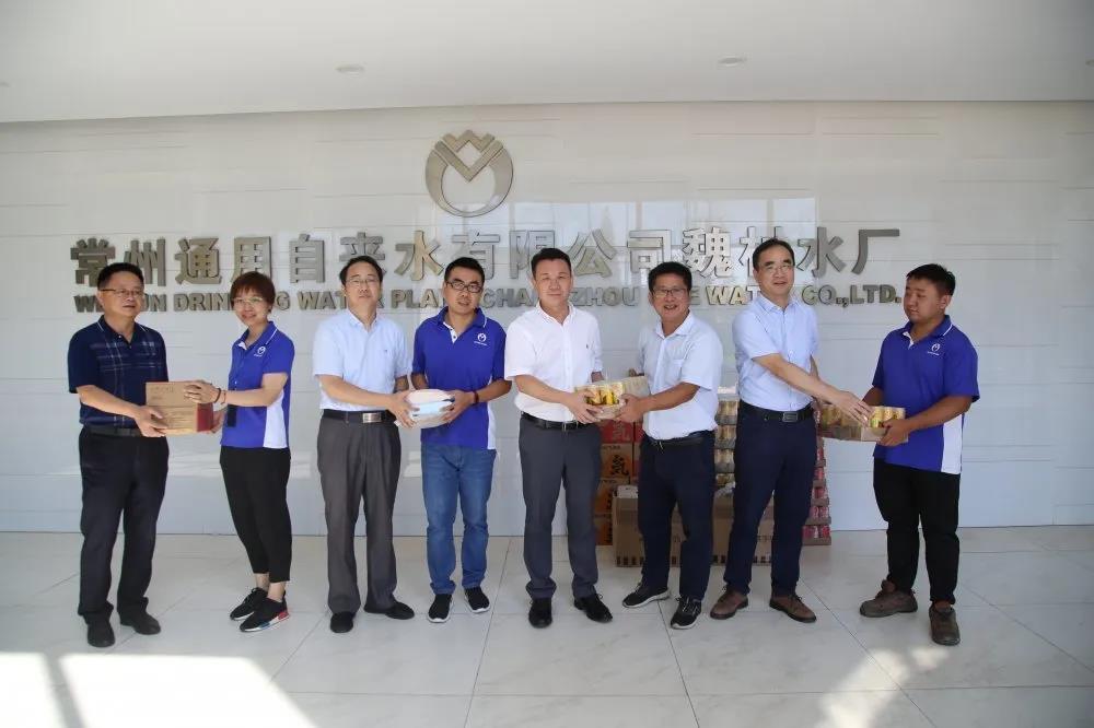 8月12日上午,常州通用自来水有限公司党委书记、董事长张越,总经理肖磊,工会主席张建兵和副总经理张敏率队前往魏村水厂、城市供水运营中心以及仓库、水表鉴定站走访慰问公司高温作业一线职工,亲手为员工送去慰问品,并代表公司向大家表示感谢和关怀,并叮嘱他们在高温天气下劳作要注意防暑降温,既要安全劳作,也要及时换岗、合理休息,避免疲劳中暑。