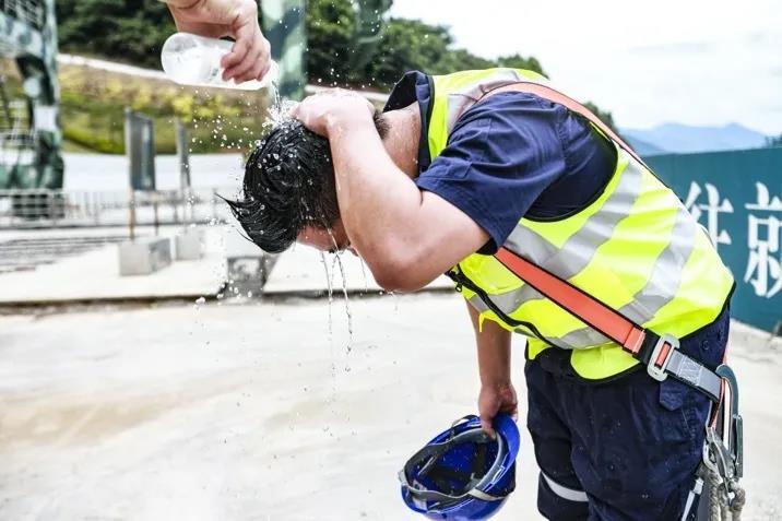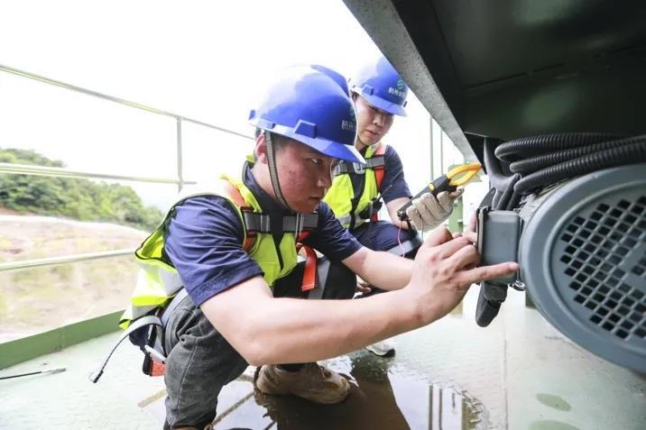 40分钟后,郑桦飞完成例行检测,走下双向门机。同事们赶紧为他头面部浇水降温。双向门机上很热,一些金属部件的表面温度会达到60℃。“几乎可以煎鸡蛋了。”郑桦飞抹着湿漉漉的脑袋,笑着说:“夏季巡检要特别注意防止中暑,浇水降温、喝藿香正气水是我们的标配。