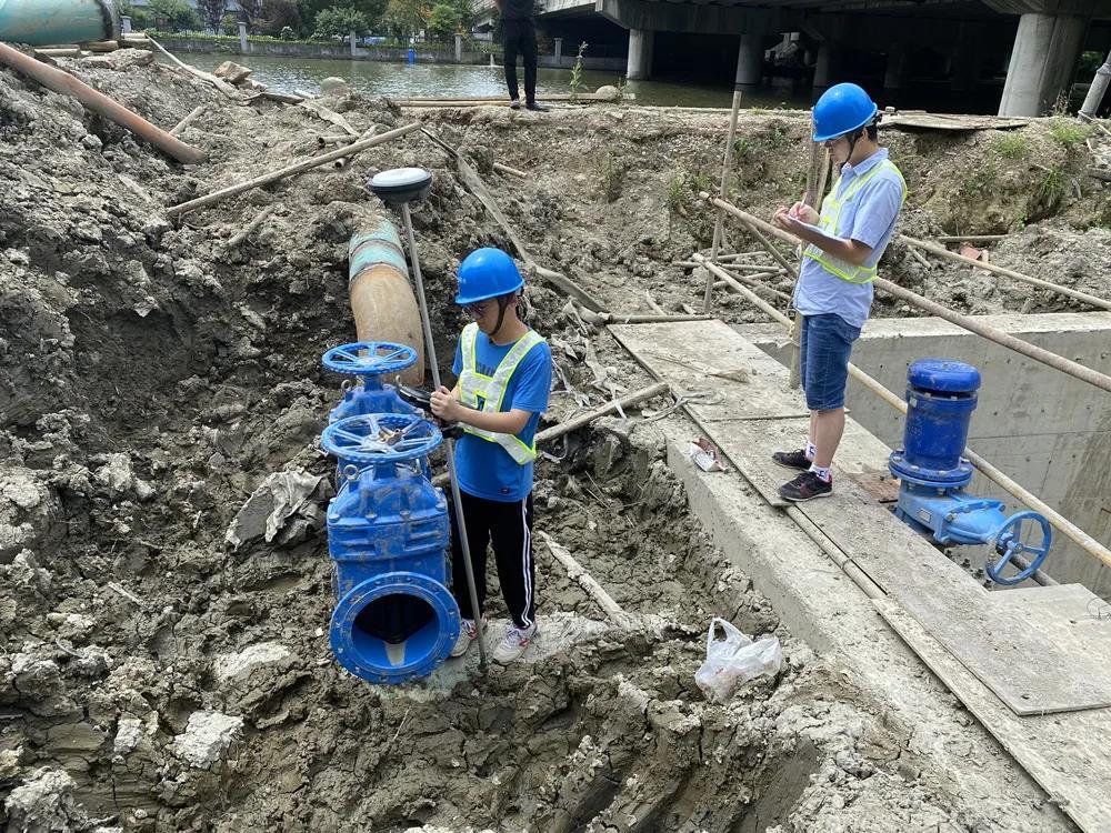 供水调度指挥中心的袁海波、张一帆肩负重重的仪器,奔跑在龙凤桥DN800顶管工程项目的现场。