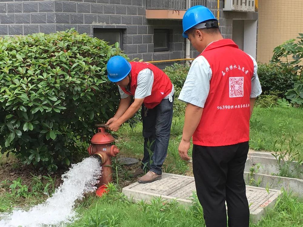 供水二分公司的朱建军、王林荣又开始了高峰供水稽查巡线,正在对消防栓等管网设施进行维护。