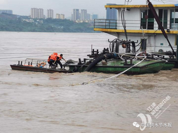 自进入汛期后,两江水务高度重视、周密安排,确保洪峰过境正常供水。其中明月沱水厂因趸船取水防汛压力较大,公司审时度势协调组织,面对8月19日长江特大洪峰的到来,提前积极采取措施保证明月沱水厂取水安全。为较好应对重庆发生流域性大洪水风险,公司早在高峰供水前就制定了明月沱水厂防洪保供防范措施,7月初特邀请中山舰打捞公司水上应急专家对明月沱水厂取水趸船开展专项检查,提出可行性建议并予以了实施。为确保汛期安全供水,明月沱水厂3名员工从8月初开始驻厂24小时轮流值守已大半月,密切观察河面水流和水位变化,加强巡查频率,在8月14号江北区寸滩站出现最高水位(185.0)时,明月沱水厂员工连续三天在冒着酷暑拆换管道接头、移动锚链、收放缆绳和输电线路,认真清理堆积在锚链、钢丝绳上的杂草,及时接通联络管,保障一级站取水正常和供水需求。