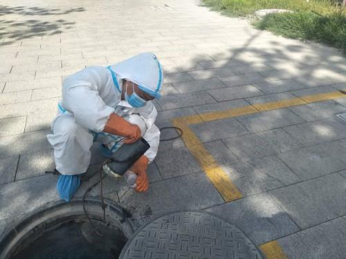 开展城区排水管网集中消杀工作。对阜康市8个商业区总排水口(购物城、华联市场、瑞成万家、城北菜市场、康乾街、团结西路、民族巷、碧琳城)及准格尔路、博峰街8个十字路口的主排水井进行消杀工作,消杀液为次氯酸钠消毒水,消杀配比量为1:200。抽用2部皮卡车作为排水井消杀喷洒专用车辆,主要对排水井井壁、流槽、踏步、二层井盖及井圈全方位喷洒消杀不留死角,消杀作业期间采用低压作业,防止喷溅,抽用1辆清污车在消杀作业30分钟后对排水井进行冲洗。