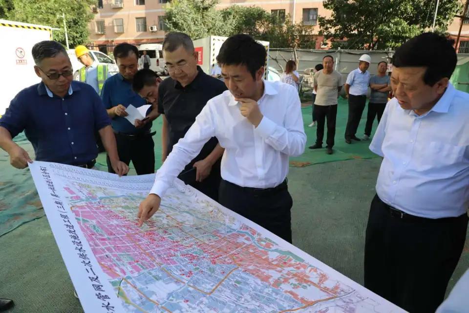 刘程民一行先后对名仕园小区、节水局宿舍老旧小区二次供水设施改造(三期)工程进行实地调研。在改造施工现场,张永德向刘程民一行详细介绍了我市老旧小区二次供水设施(三期)改造工程各项报审程序推进情况和施工进度情况,并对老旧小区覆盖范围、改造泵房选址和数量、地沟供水管网和户管户表改造、选用管材标准和质量等方面作了汇报。