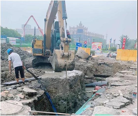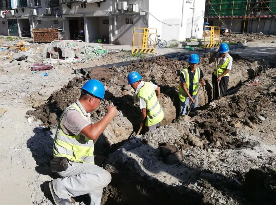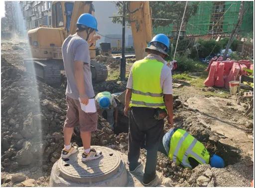 烈日之下,一线工人们进入被太阳炙烤后的施工场地,为继续做好管网迁建工作而不断发力。
